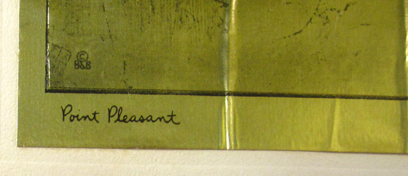 Framed gold etching of Point Pleasant by Lionel Barrymore.